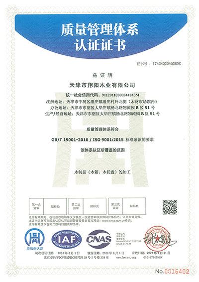 質量體系證書